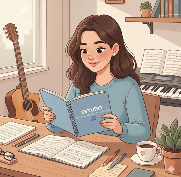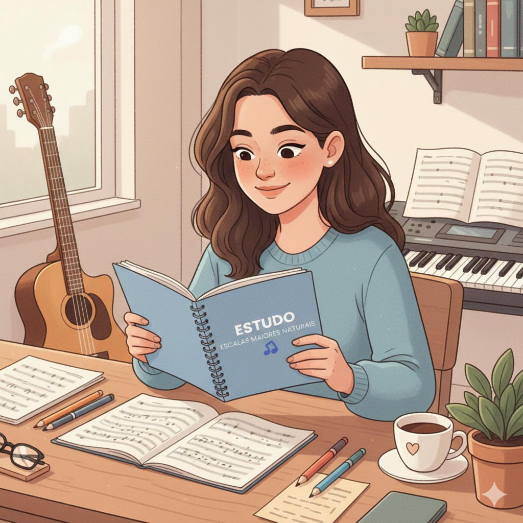 Ele é um guia estruturado para estudar escalas maiores naturais com clareza.